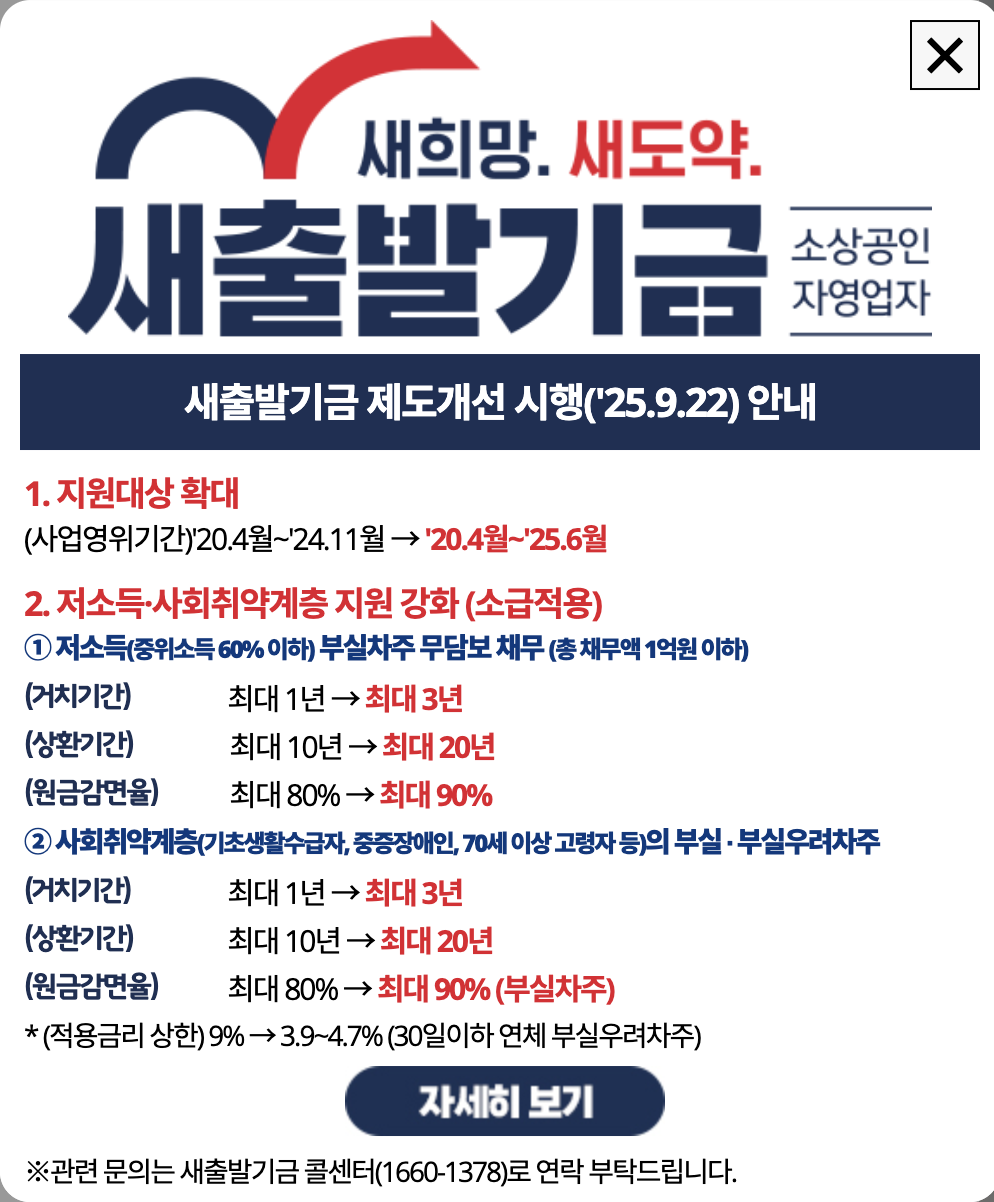 | 자영업자를 위한 새출발기금 신청방법 총정리 (0) | 2025.09.29 |