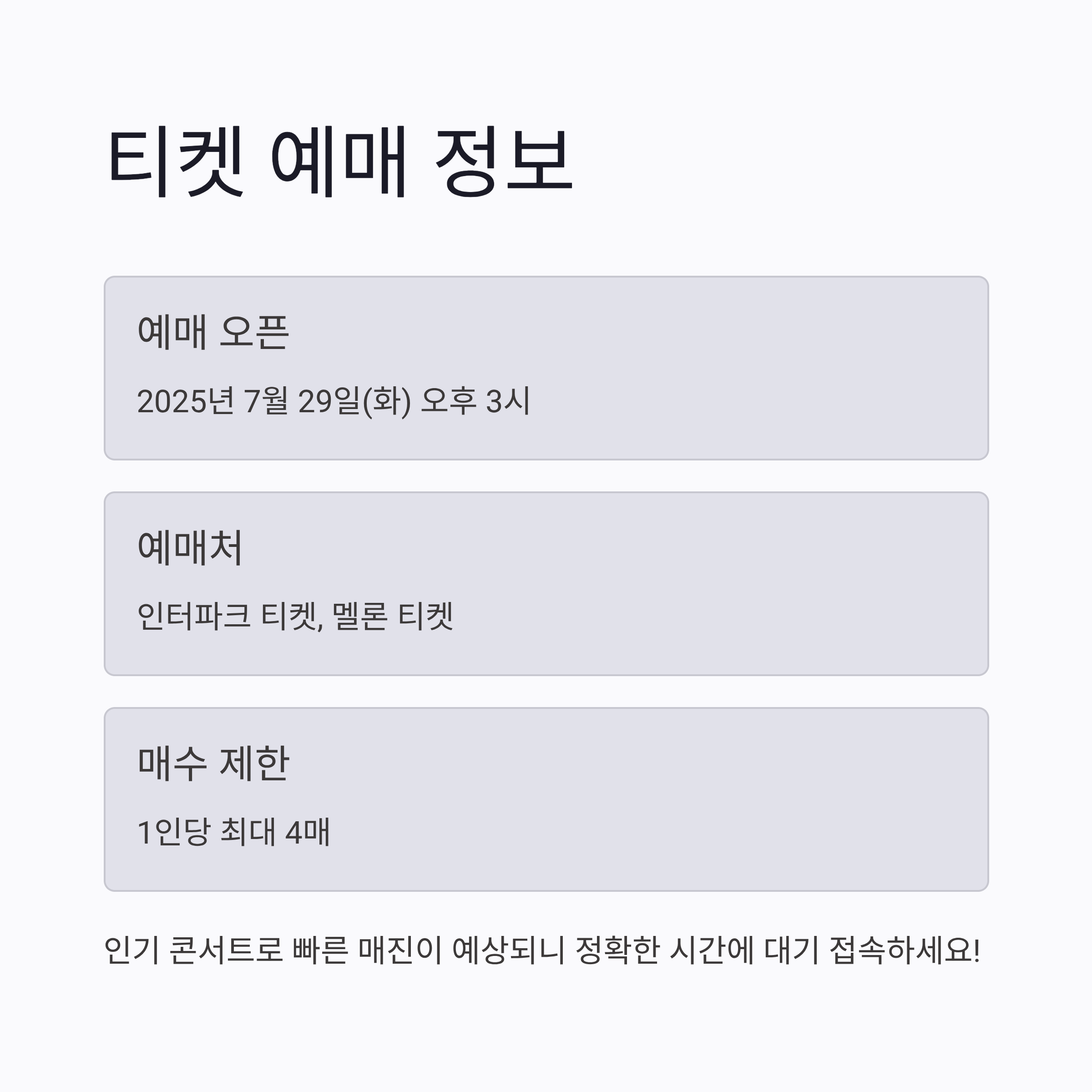 | 예매 오픈일 | 2025년 7월 29일(화) 15:00 |